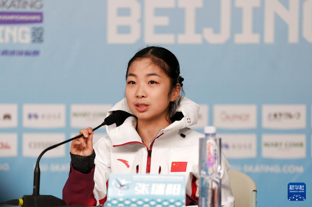 1月15日,中国花样滑冰运动员张瑞阳在发布会上发言。