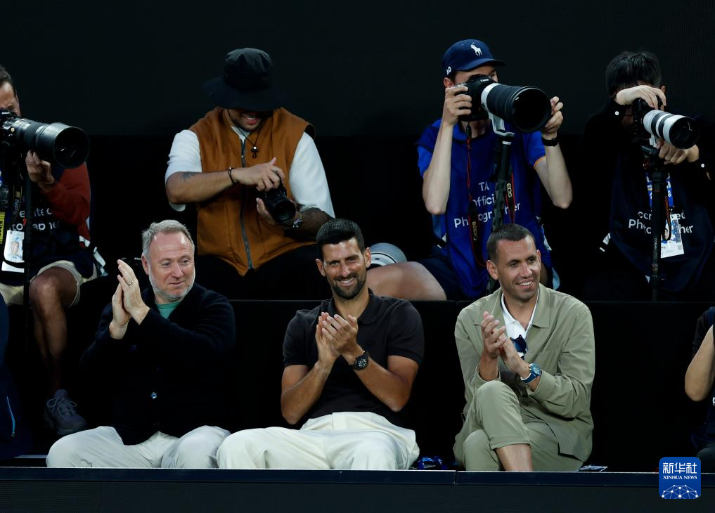 1月17日,塞尔维亚选手焦科维奇(前中)观看表演赛。