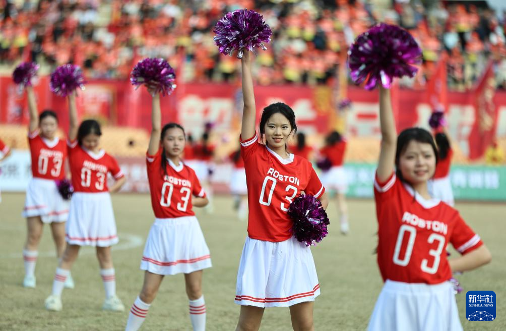 1月17日,韶关市育威中等职业学校学生在中场休息时表演啦啦操。
