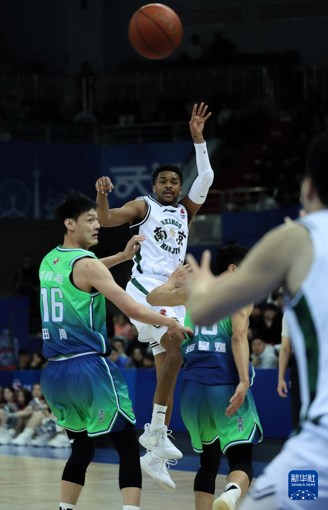 1月18日,南京天之蓝队球员汉兹(左二)在比赛中传球。