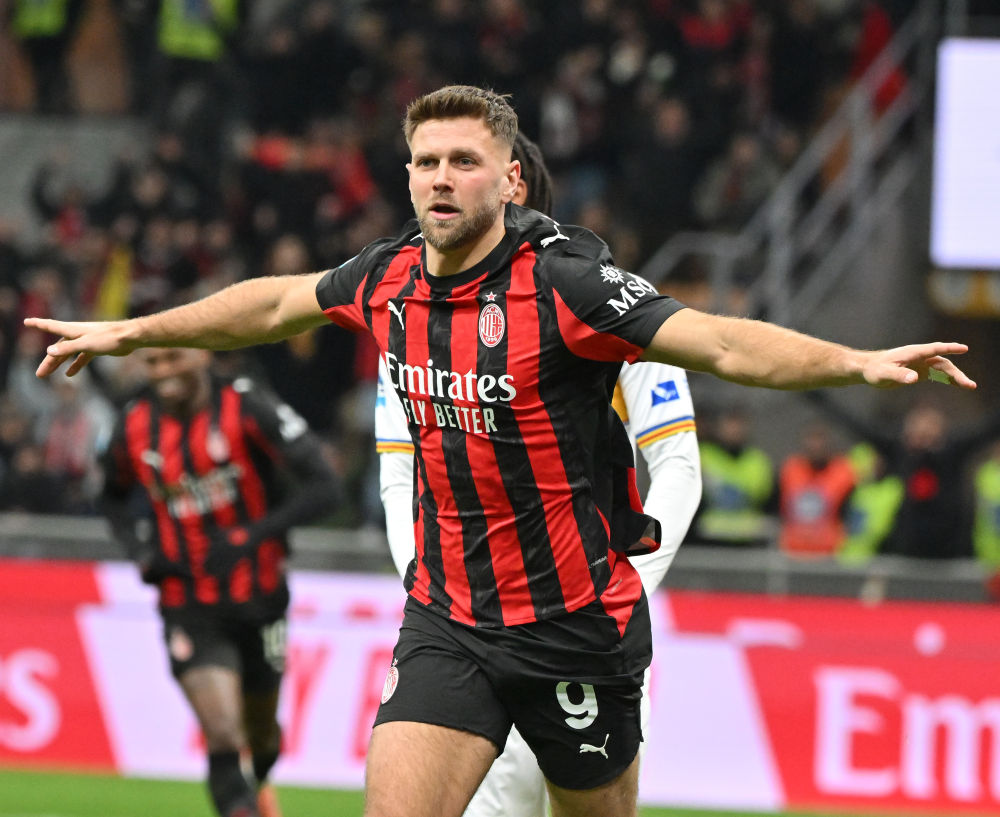 1月18日,AC米兰队球员菲尔克鲁格庆祝进球。新华社发(阿尔贝托·林格利亚摄)