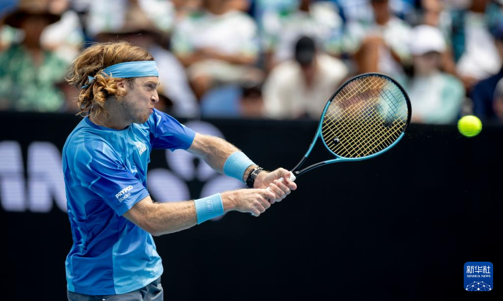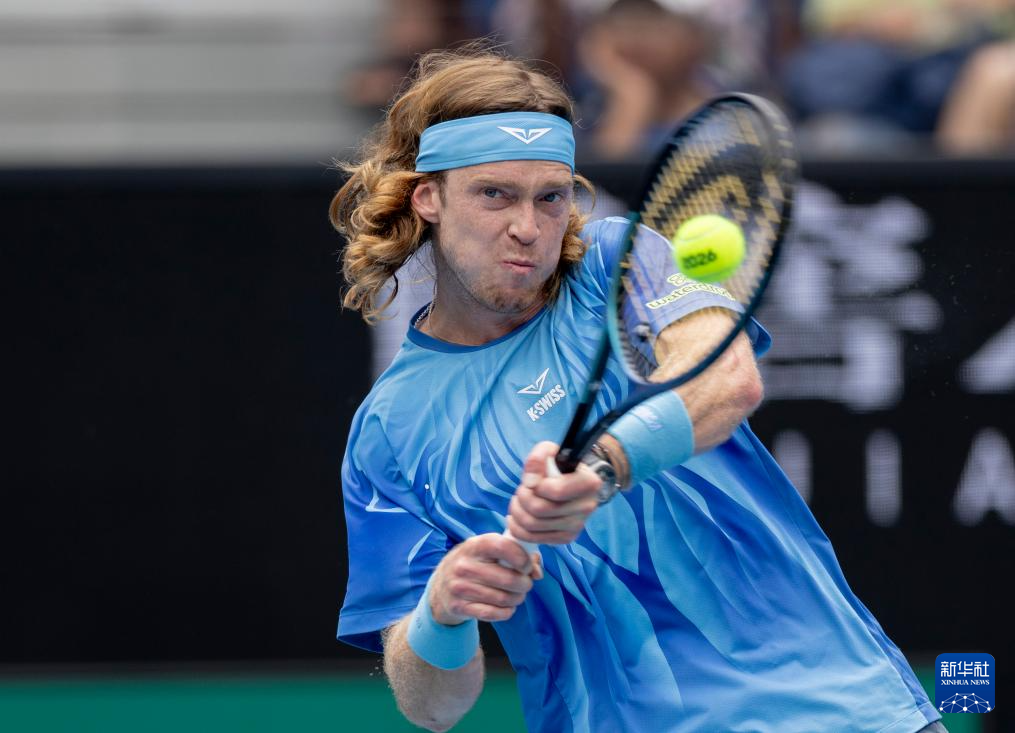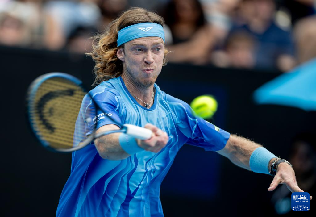 1月19日,俄罗斯选手卢布列夫在比赛中回球。