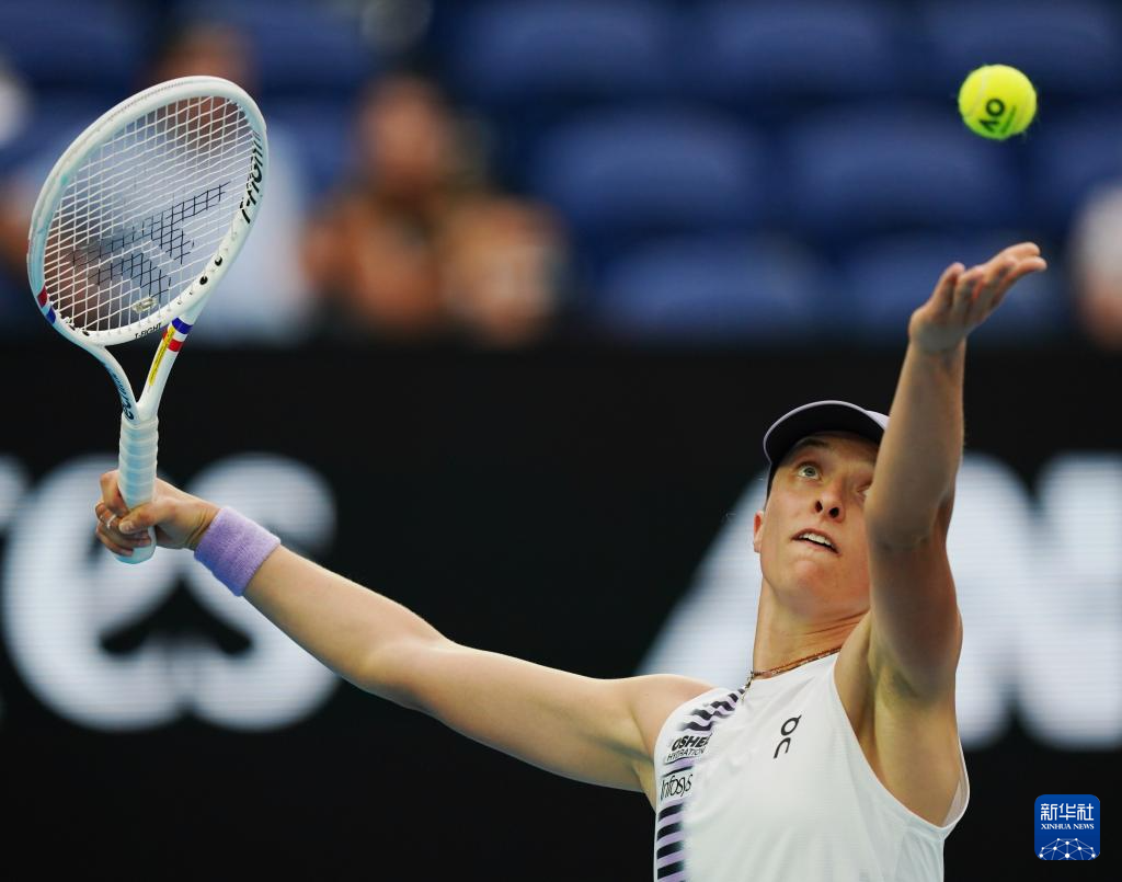 1月19日,斯维亚特克在比赛中发球。