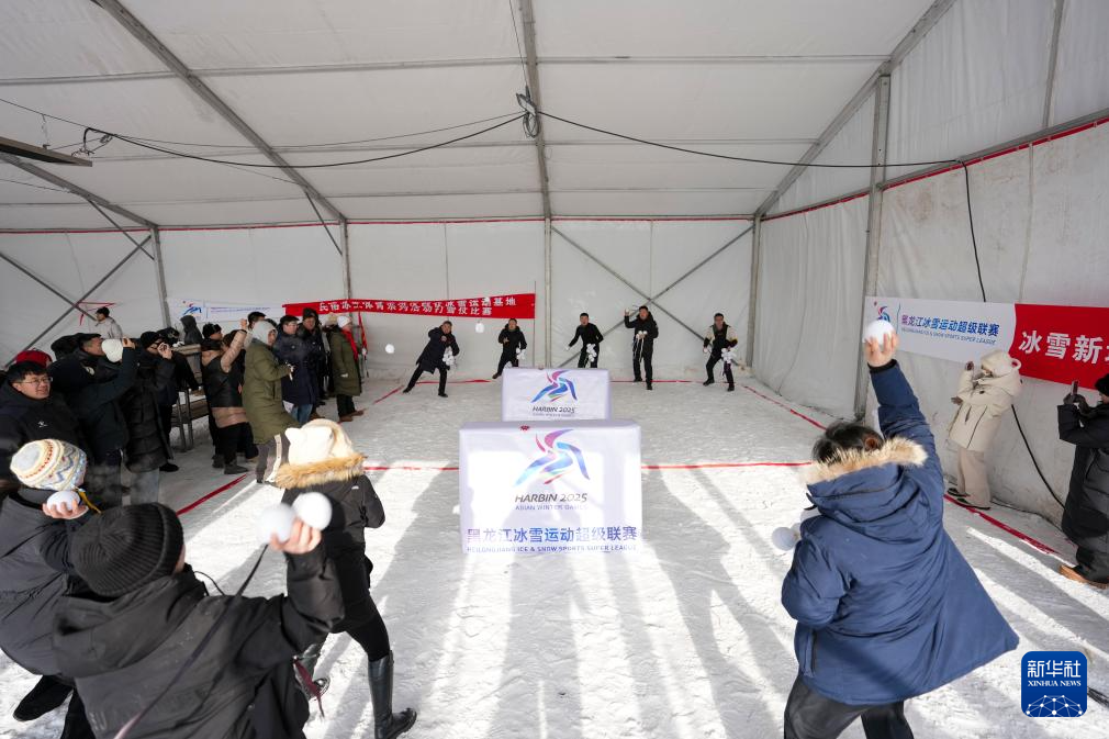 1月20日,黑龙江省“冰超”·上合冰雪体育示范区运动基地2025-2026年民俗冰上体育系列活动(打雪仗赛)在哈尔滨市开幕,共有30组165名选手参与比赛。