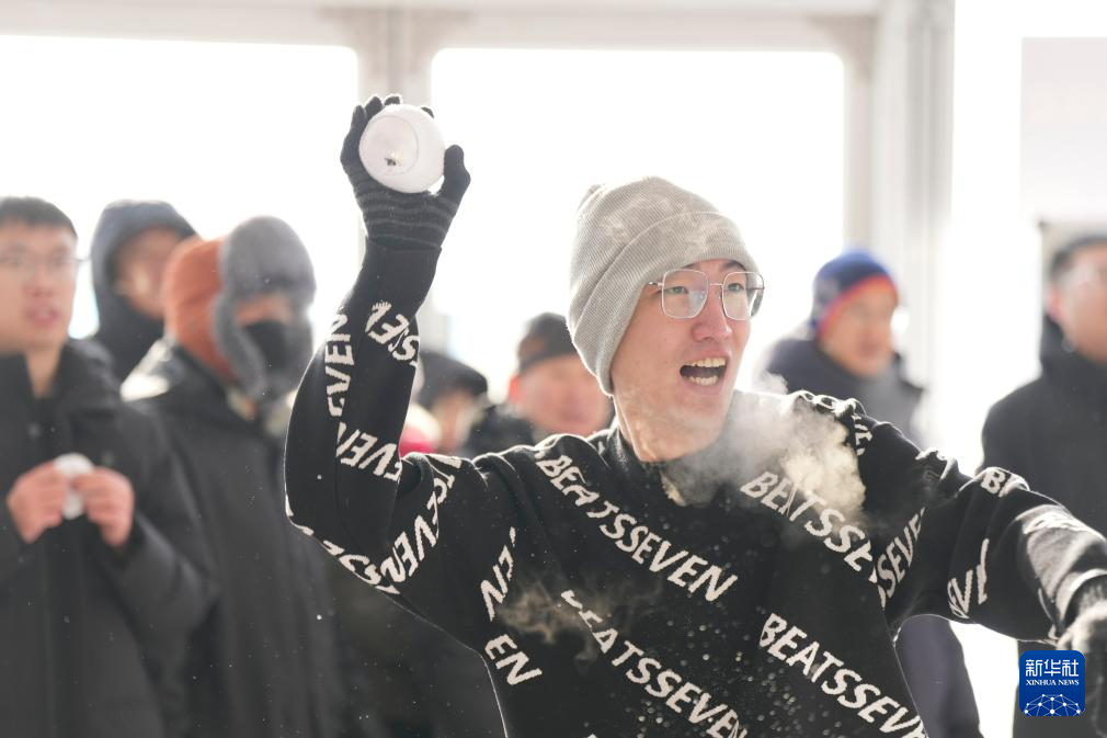 1月20日,参赛选手在比赛中掷“雪球”。新华社记者 王松 摄