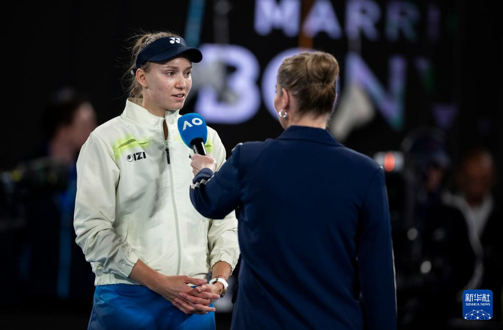 1月22日,莱巴金娜(左)在赛后接受采访。