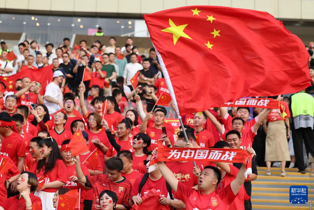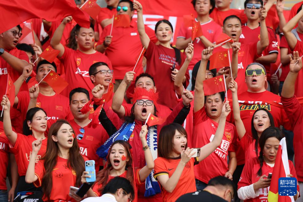 1月24日,中国队球迷赛前在看台上为球队加油。