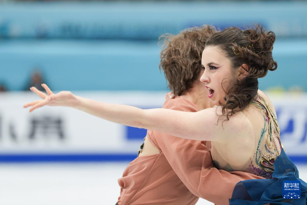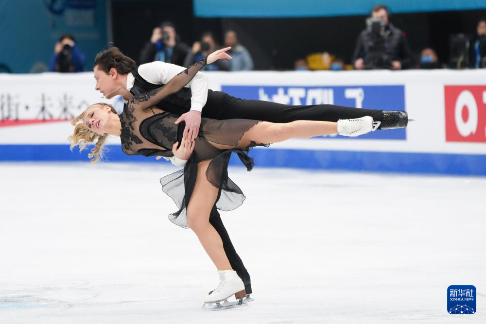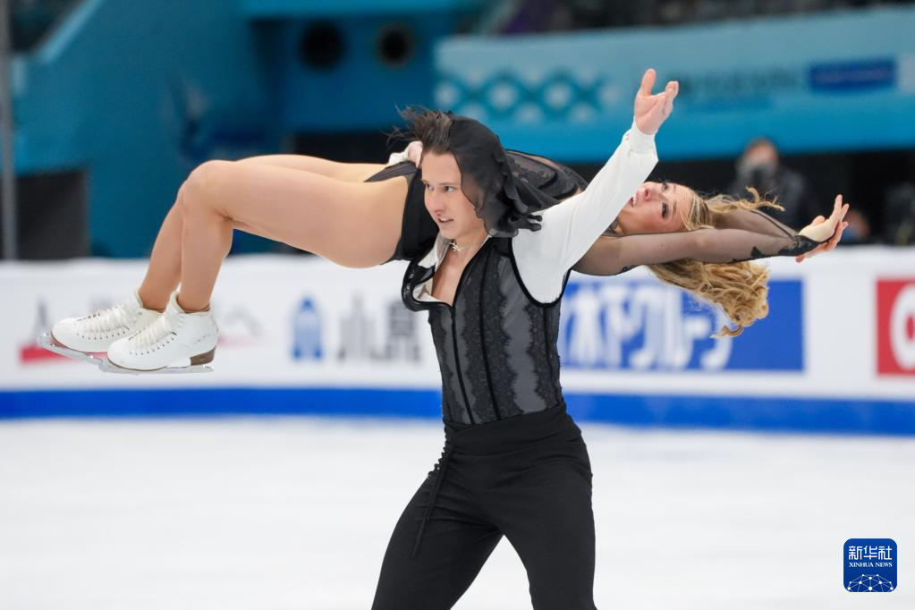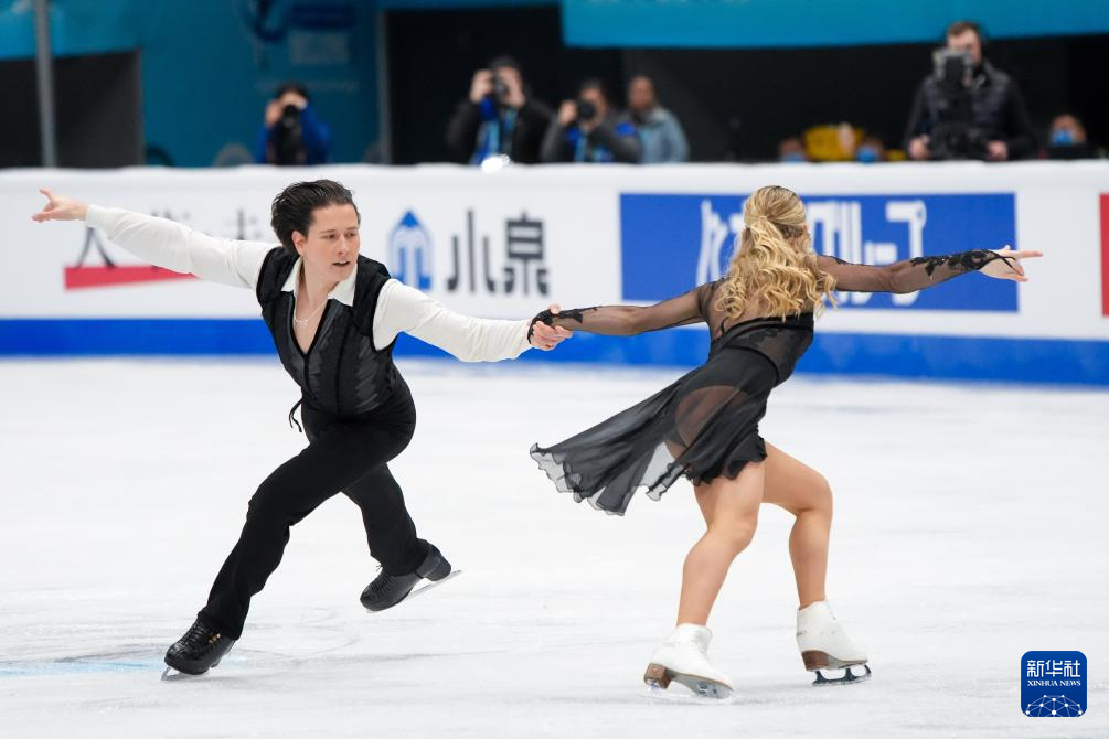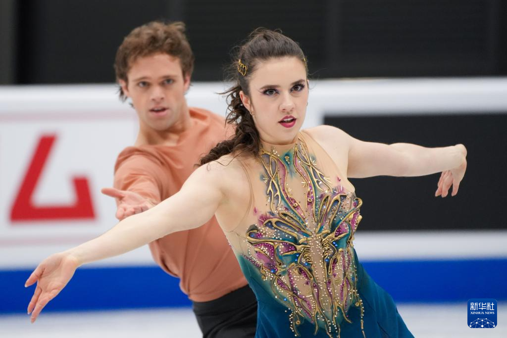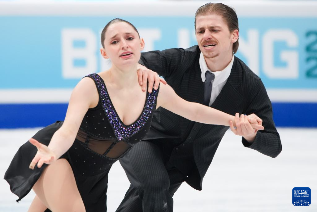 1月23日,美国组合乌娜·布朗/盖奇·布朗(右)在冰舞自由舞比赛中。最终,他们获得冰上舞蹈项目季军。