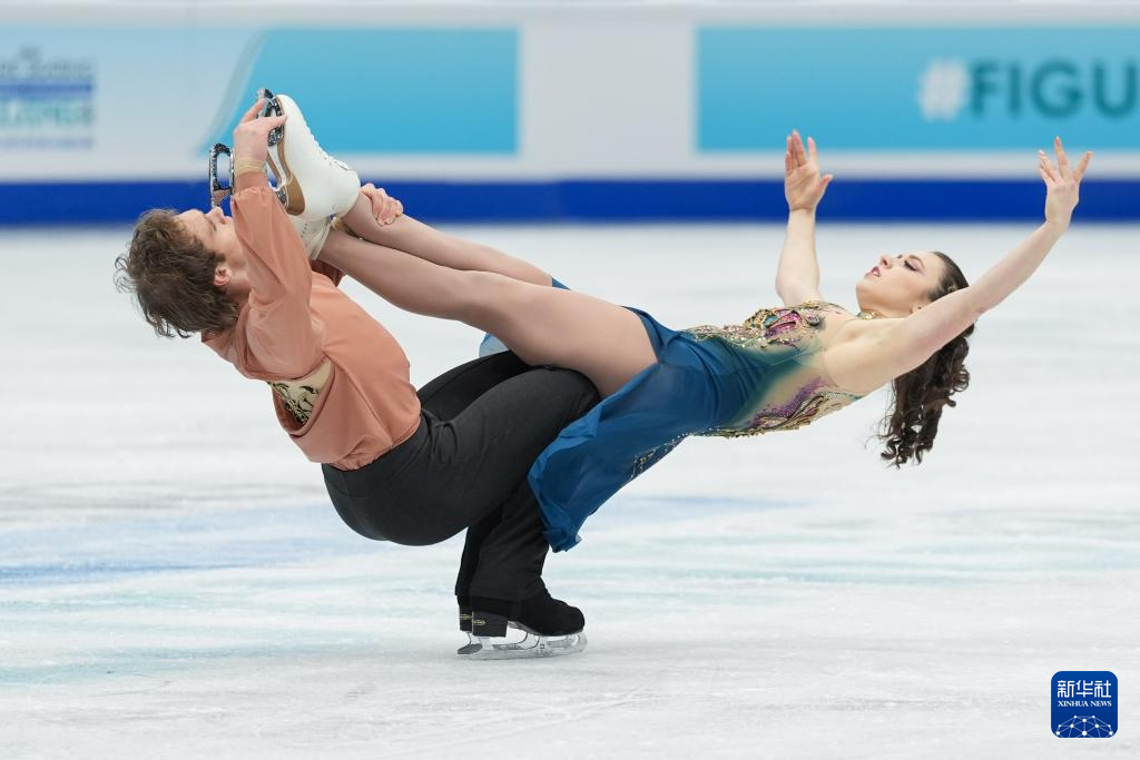 1月23日,美国组合埃米莉亚·津加斯/瓦迪姆·科列斯尼克(前)在冰舞自由舞比赛中。最终,他们获得冰上舞蹈项目冠军。