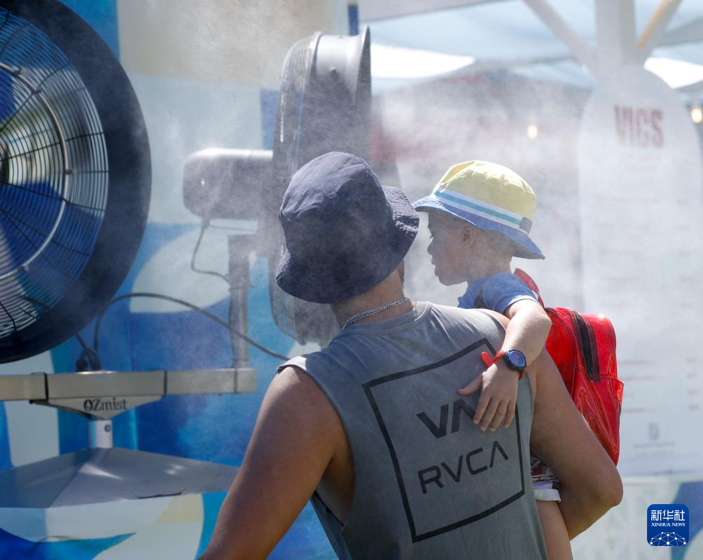1月24日,人们在墨尔本公园享受风扇吹出的凉风。