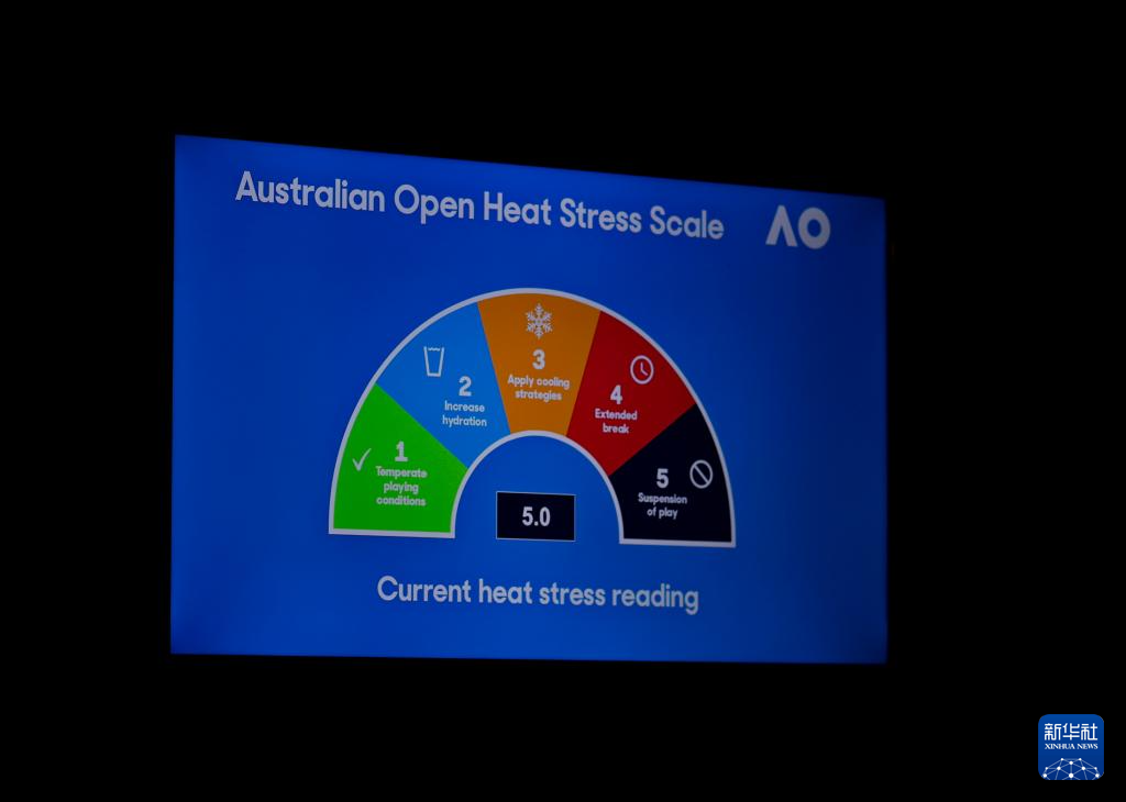 当地时间1月24日,在墨尔本进行的2026年澳大利亚网球公开赛热应激指数达到5.0,所有户外场比赛暂停。