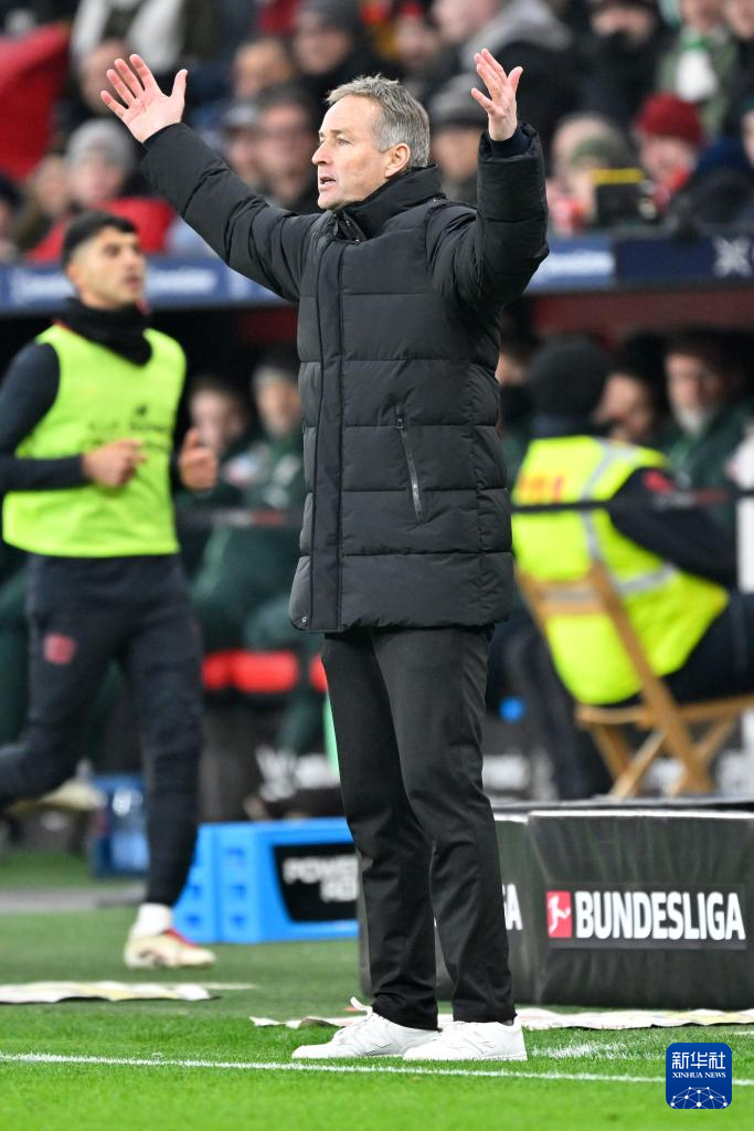 1月24日,勒沃库森队主教练尤尔曼在场边观赛。