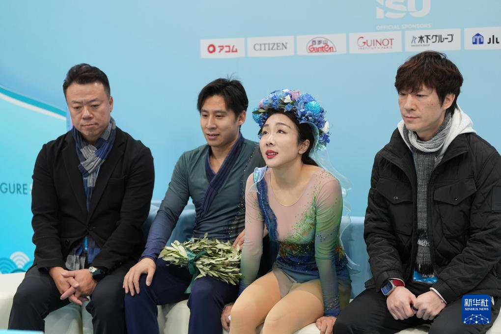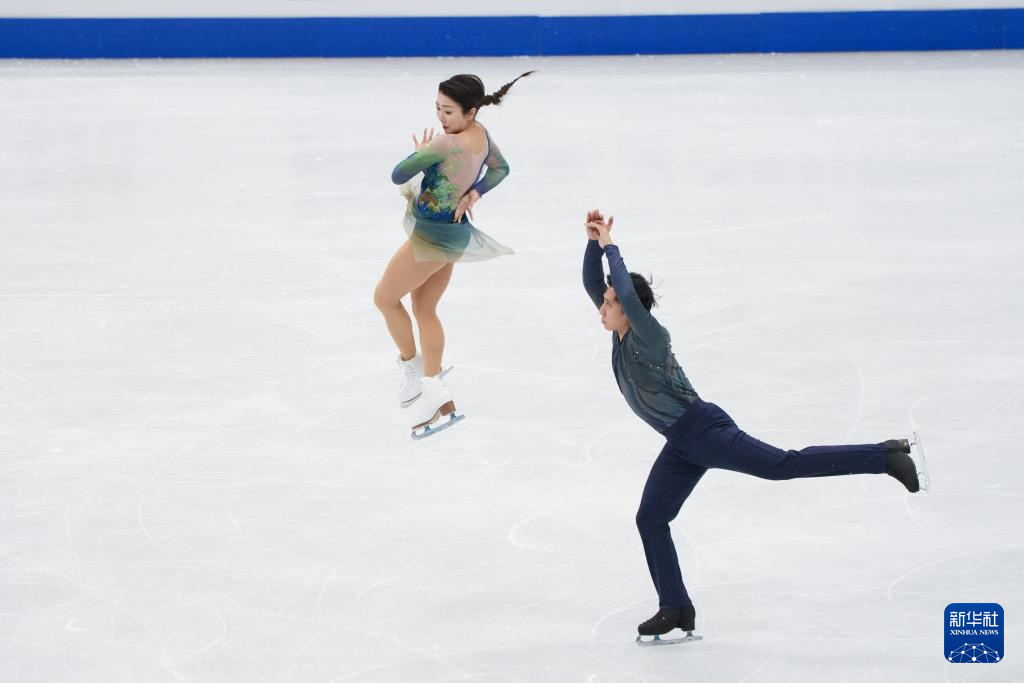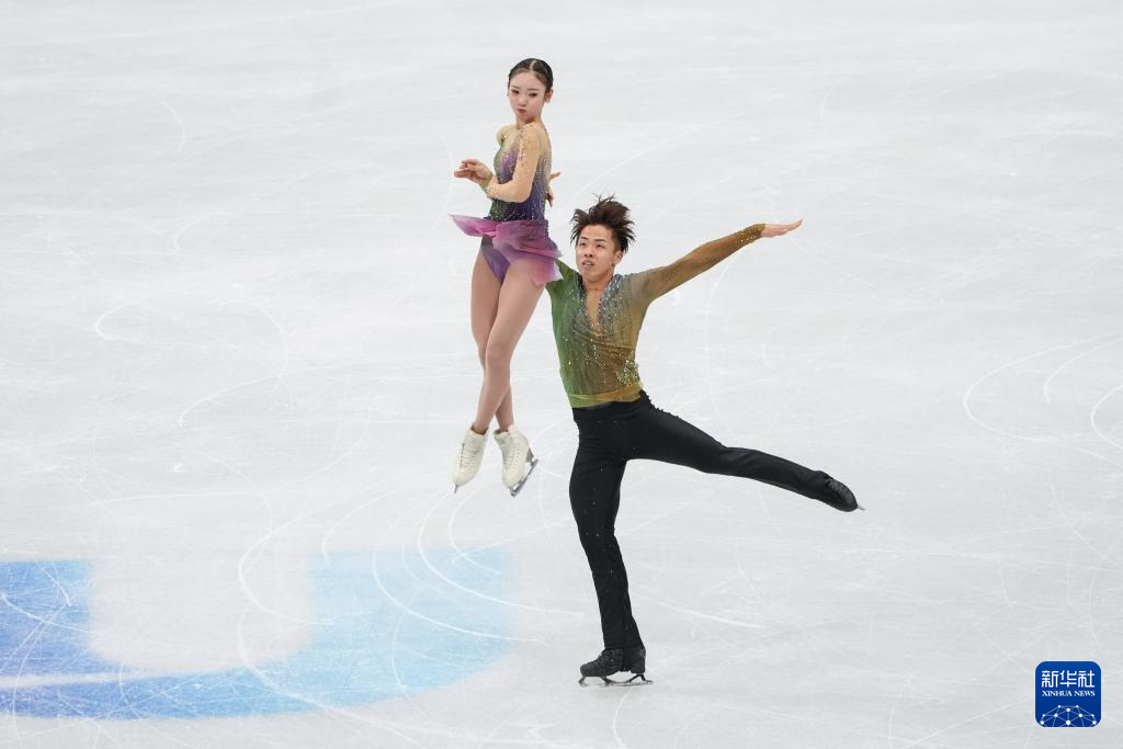 1月24日,日本组合长冈柚奈/森口澄士(下)在双人滑自由滑比赛中。最终,他们获得双人滑项目季军。