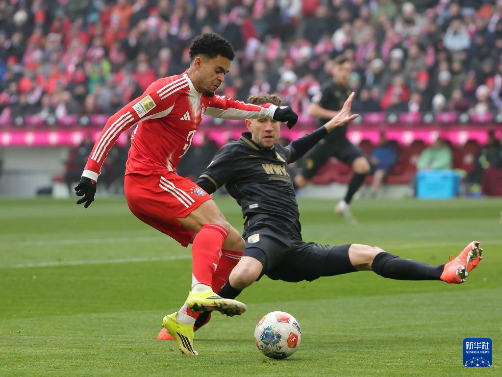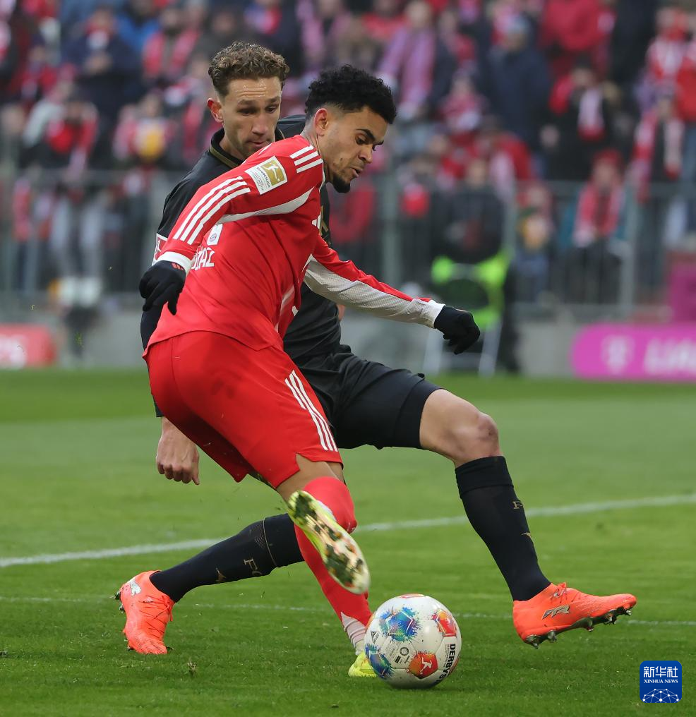 1月24日,拜仁慕尼黑队球员迪亚茨(左)和奥格斯堡队球员查维斯在比赛中拼抢。