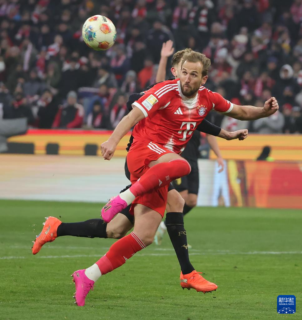 1月24日,拜仁慕尼黑队球员凯恩(前)在比赛中拼抢。