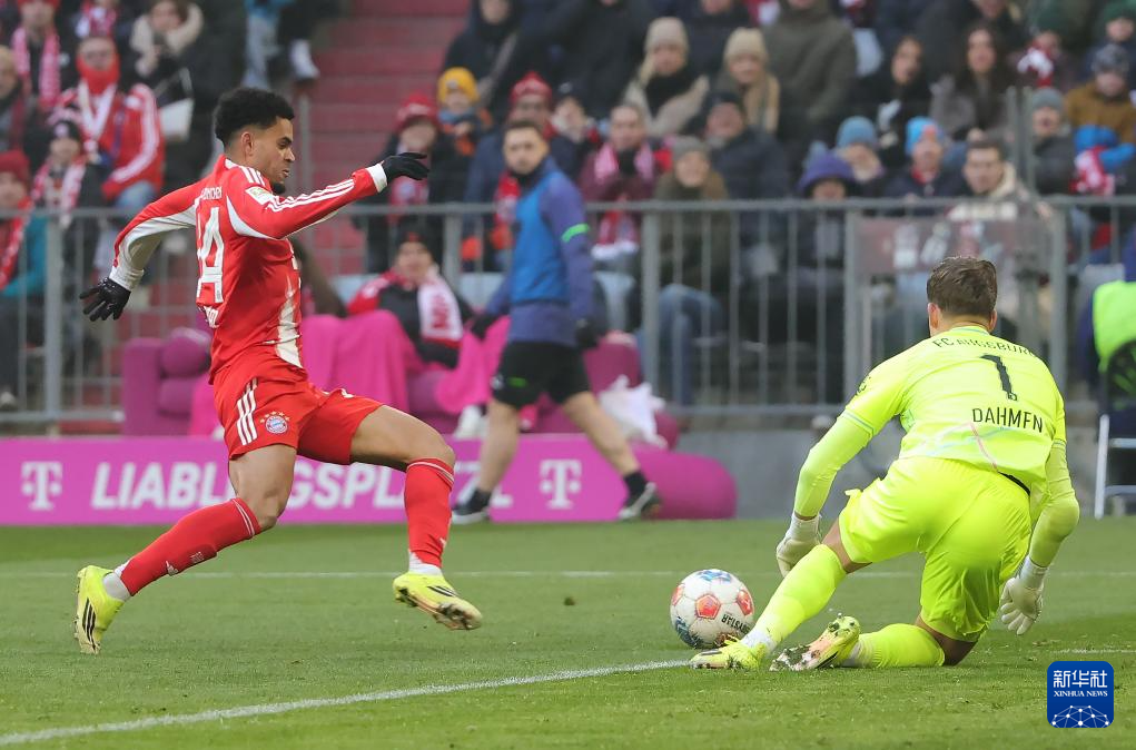 1月24日,奥格斯堡队守门员达门(右)在比赛中防守拜仁慕尼黑队球员迪亚茨。