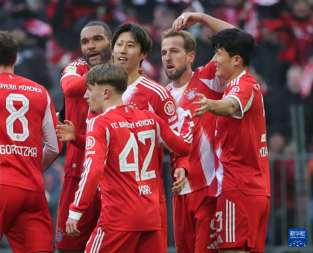 1月24日,拜仁慕尼黑队球员庆祝得分。