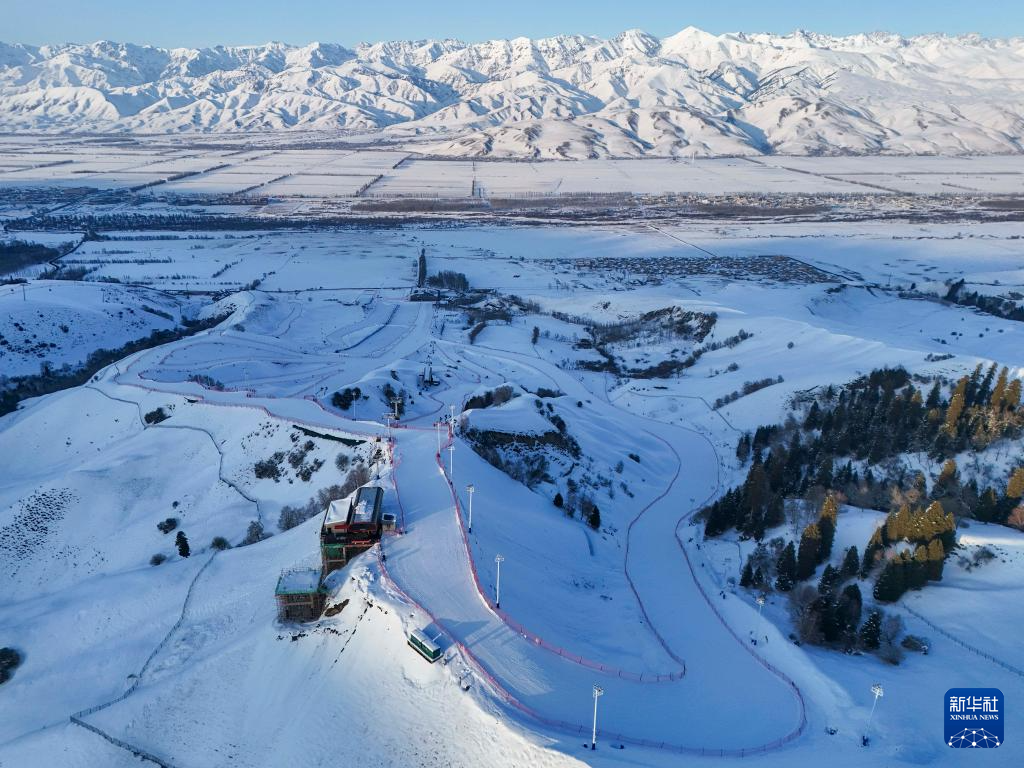 这是1月24日拍摄的新疆那拉提哈茵赛滑雪度假区(无人机照片)。