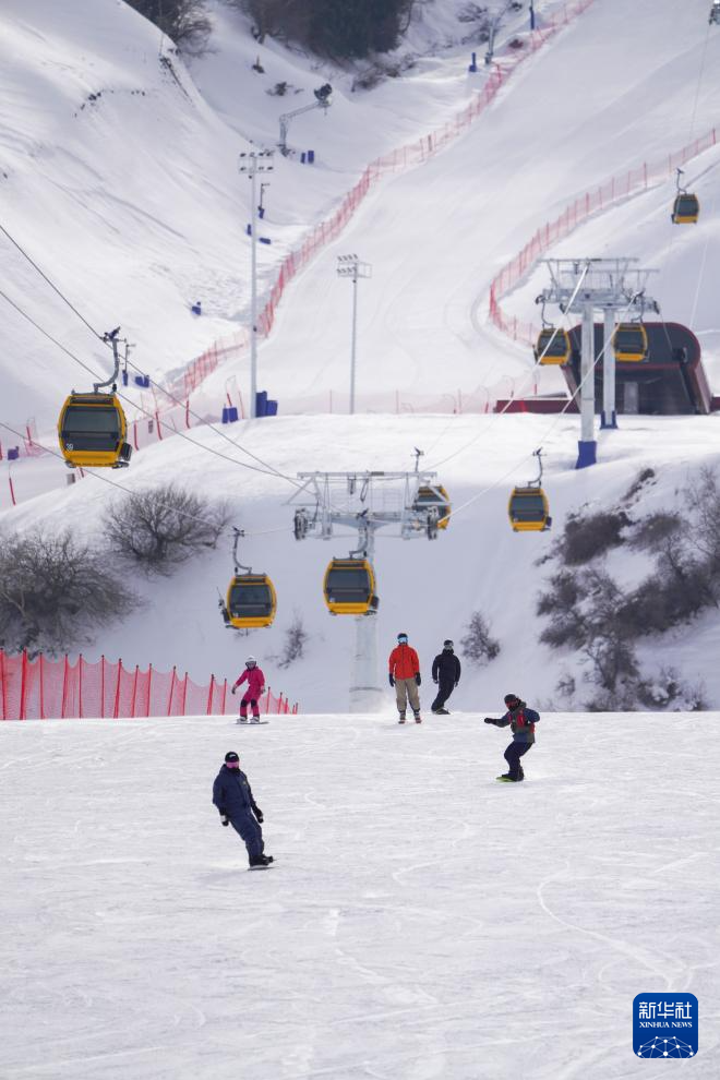 1月25日,雪友在新疆那拉提哈茵赛滑雪度假区滑雪。