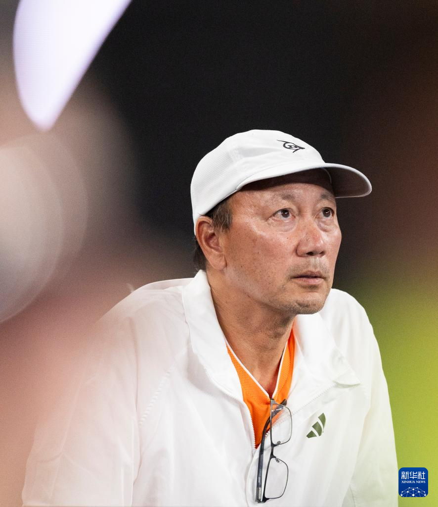 1月27日,勒纳·钱的教练张德培在场边观赛。