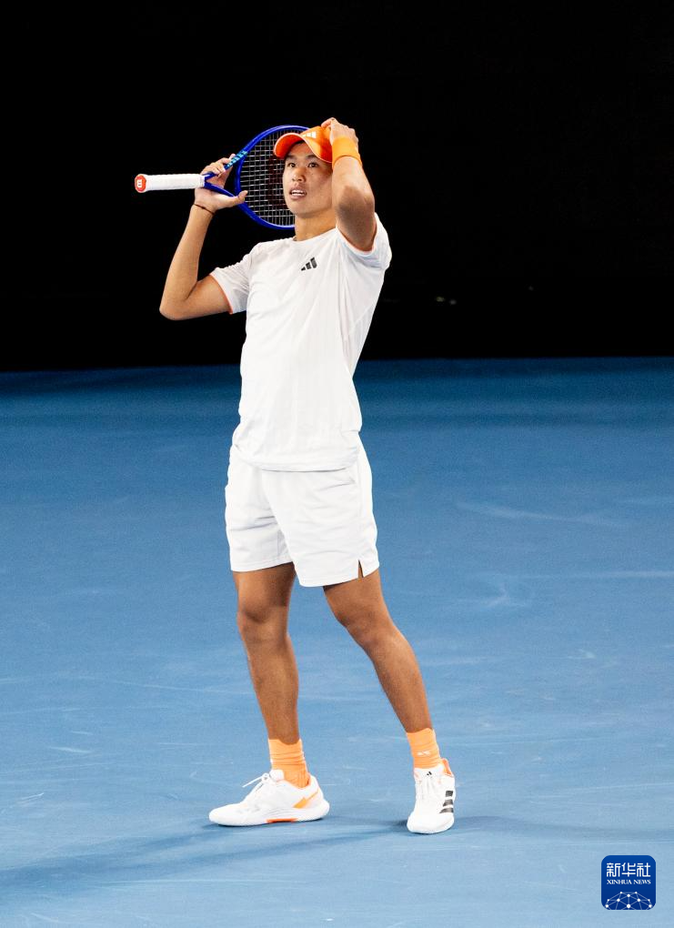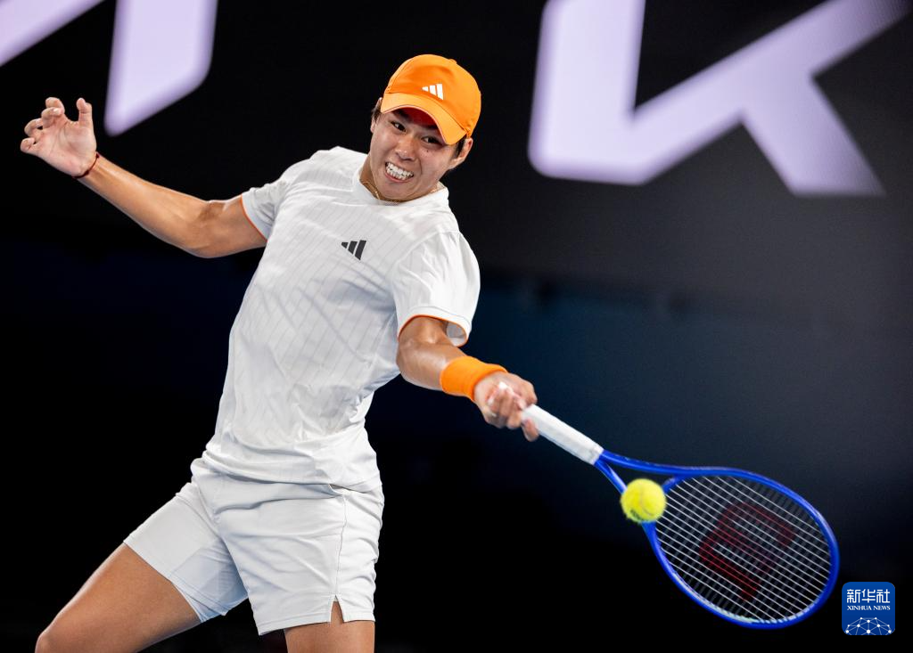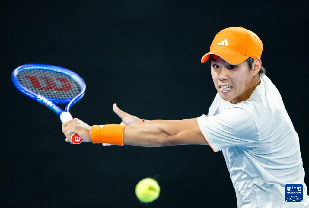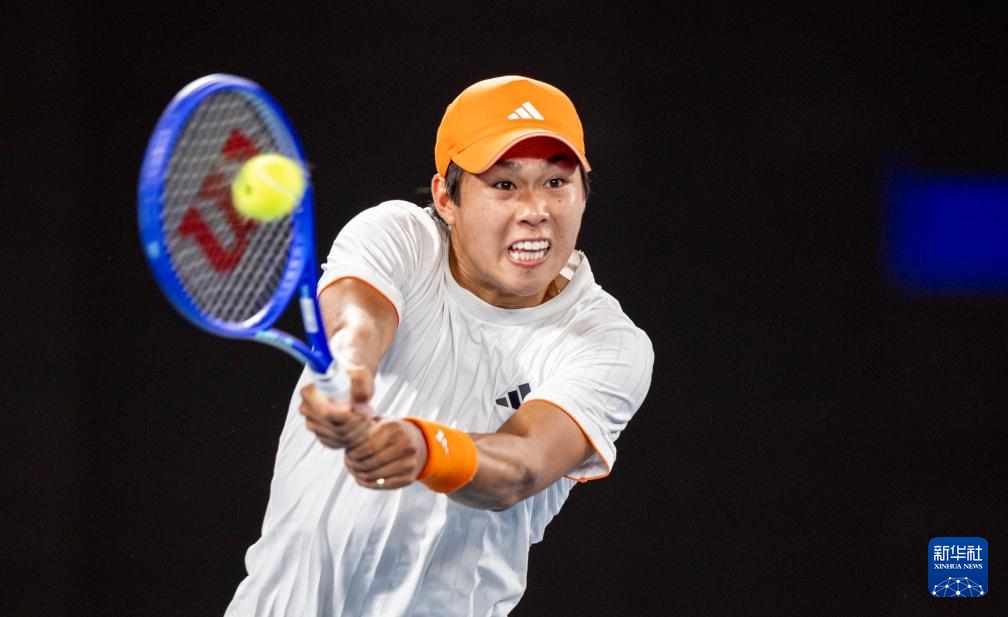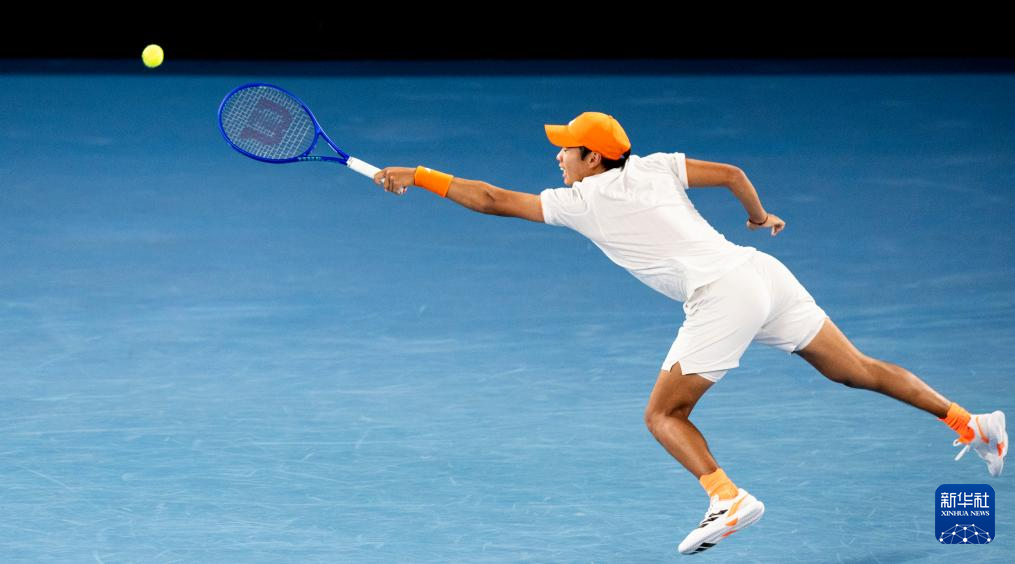 1月27日,勒纳·钱在比赛中回球。