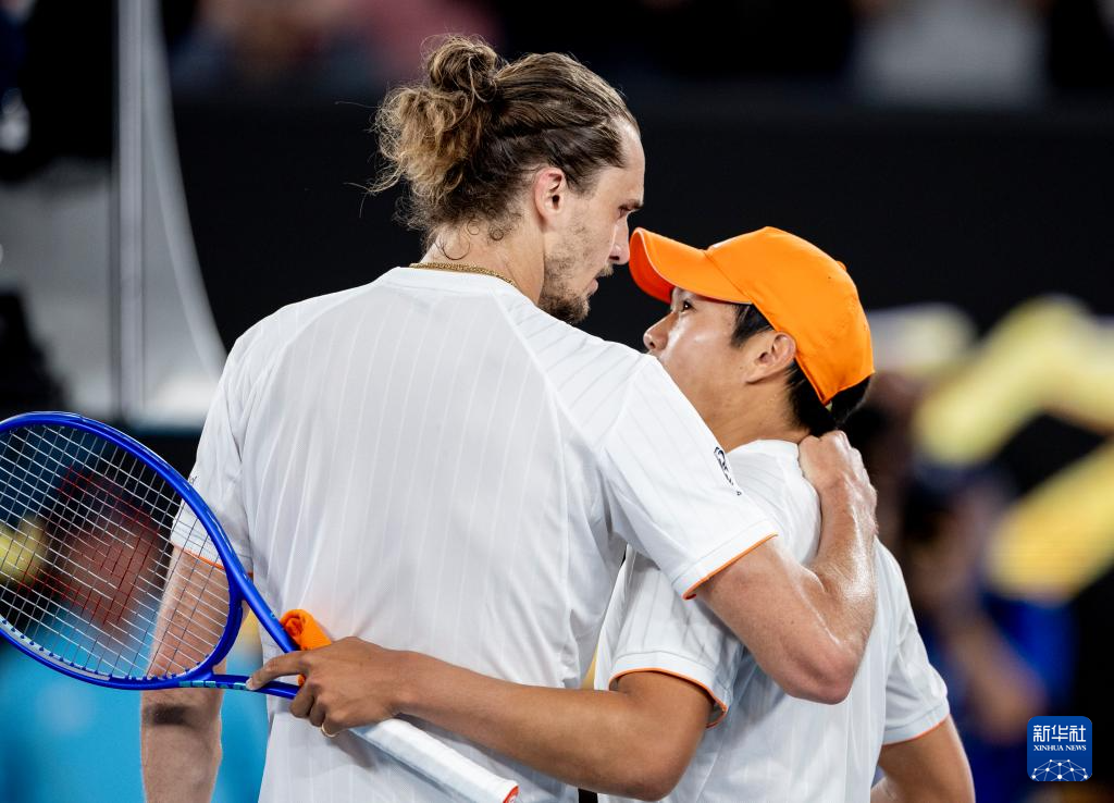 1月27日,兹韦列夫(左)和勒纳·钱赛后拥抱致意。