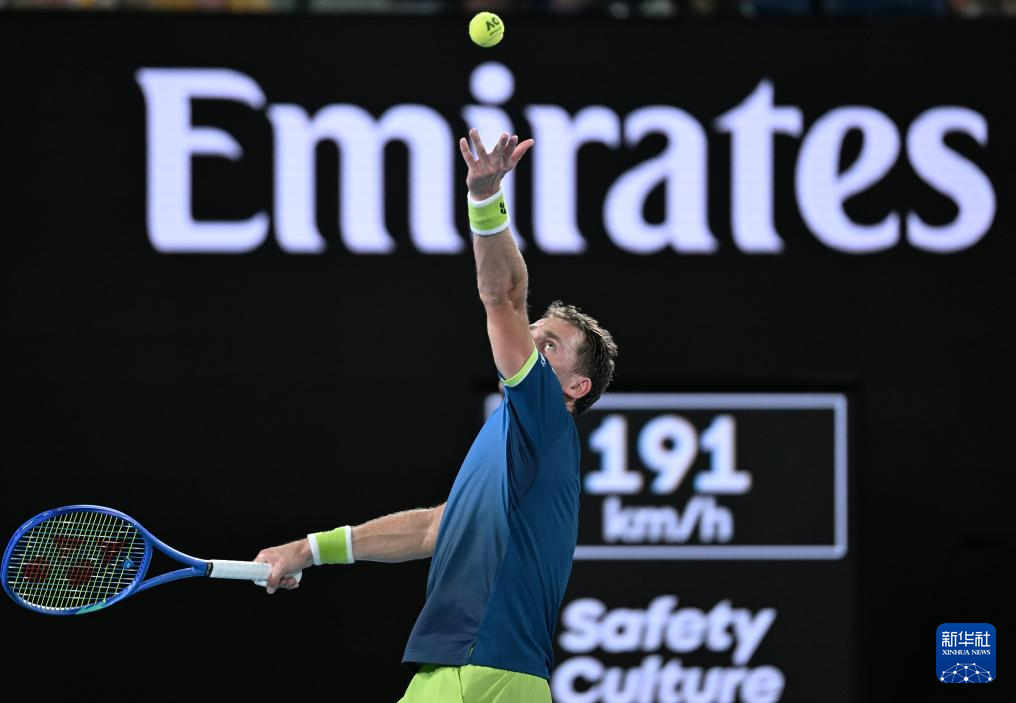 1月26日,鲁德在比赛中发球。