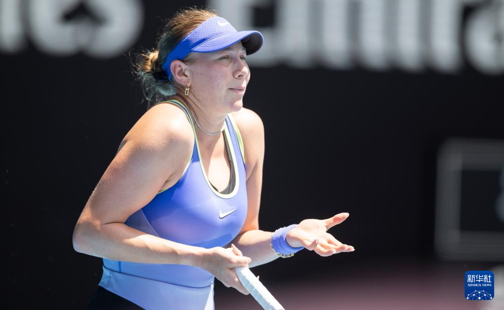 1月28日,阿尼西莫娃在比赛中回球。