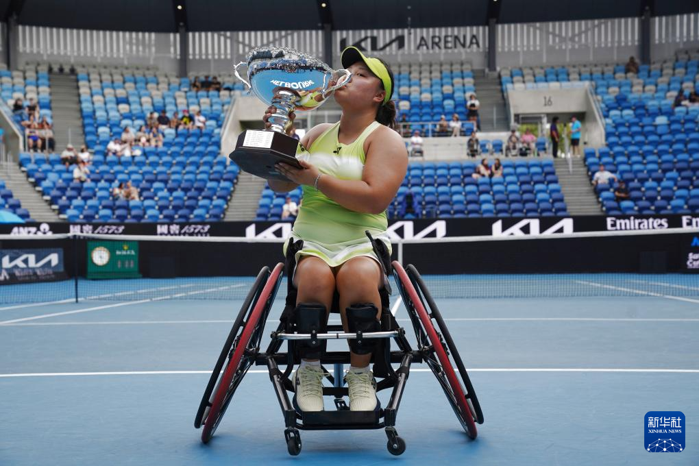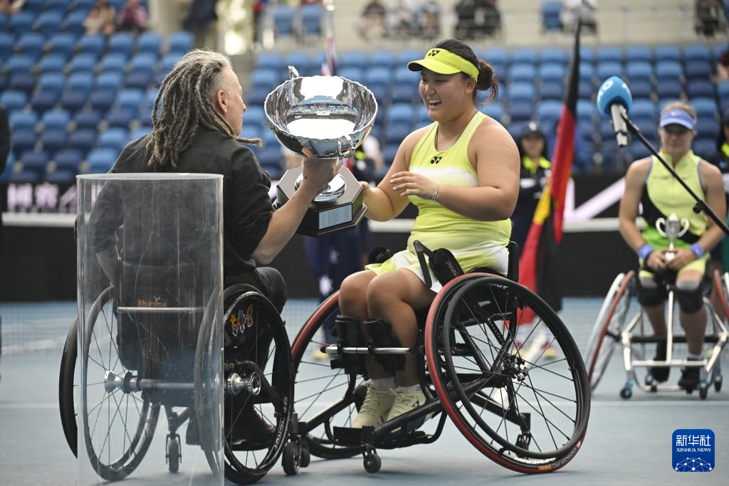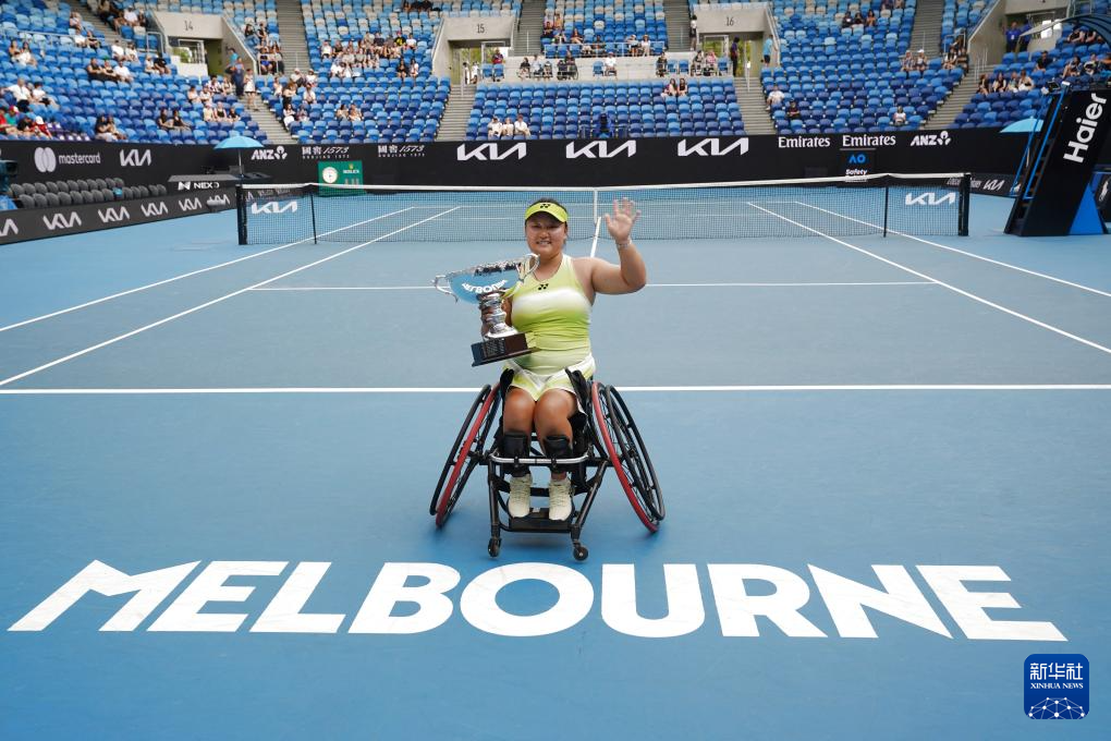 当地时间1月31日,在澳大利亚墨尔本进行的2026年澳大利亚网球公开赛轮椅网球女子单打决赛中,中国选手李晓辉2比0战胜荷兰选手德格鲁特,夺得冠军。