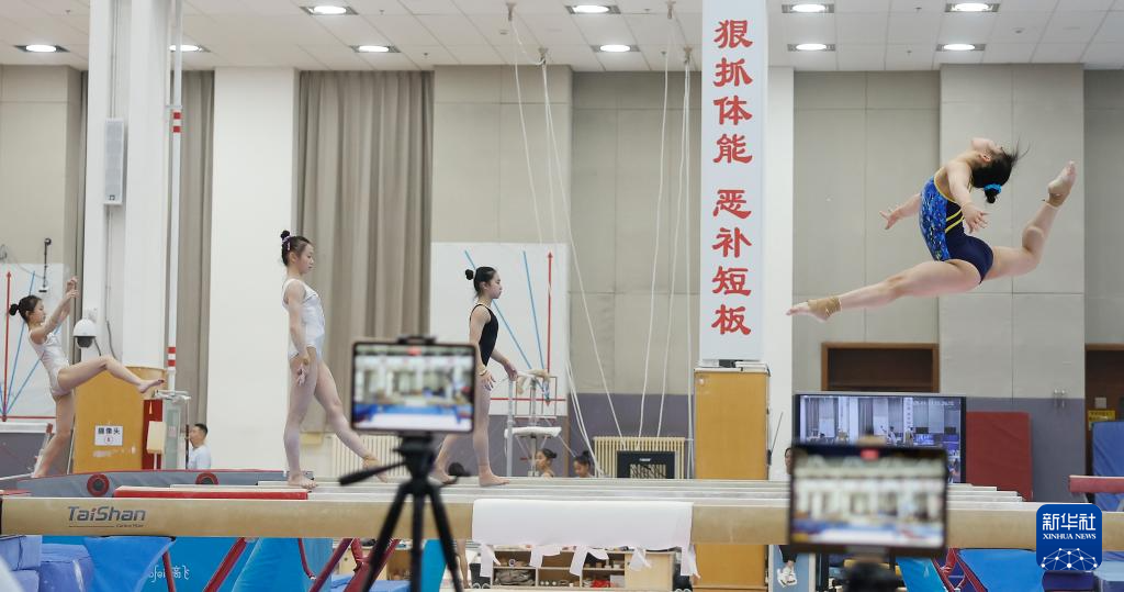 1月31日,选手们在平衡木训练中。