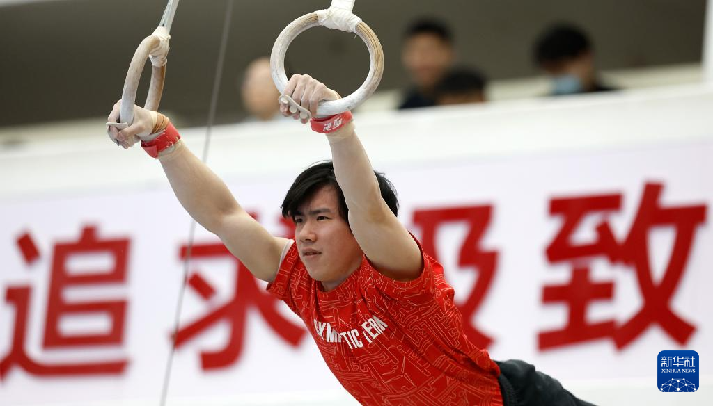 1月31日,张博恒在吊环训练中。