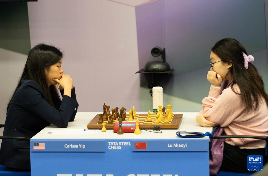 2月1日,中国棋手鹿妙夷(右)在比赛中与美国棋手叶诗雯对弈。