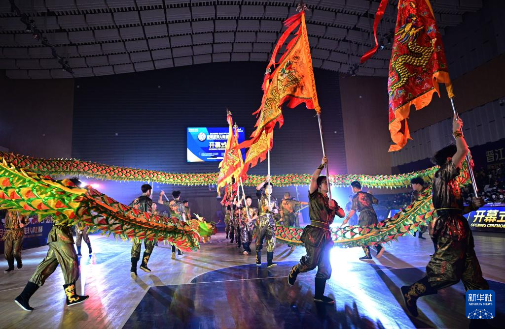 2月1日,演员在邀请赛开幕式上表演舞龙。