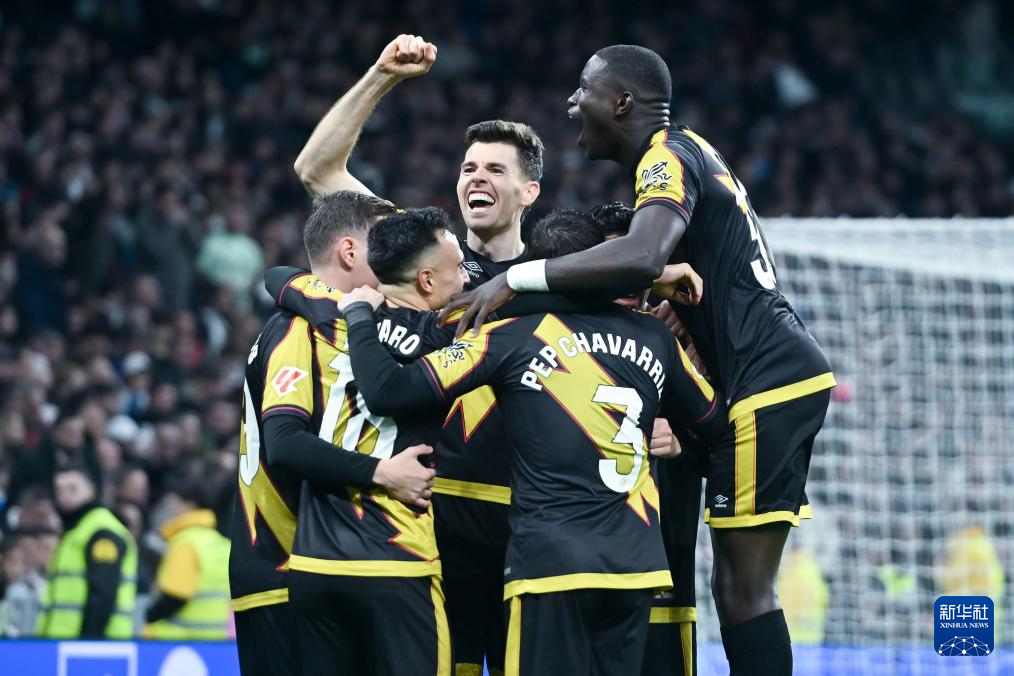 2月1日,巴列卡诺队球员庆祝进球。