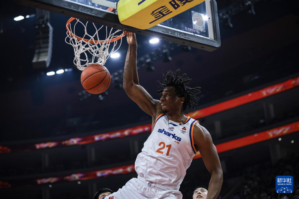 2月3日,上海久事队球员怀特塞德在比赛中扣篮。