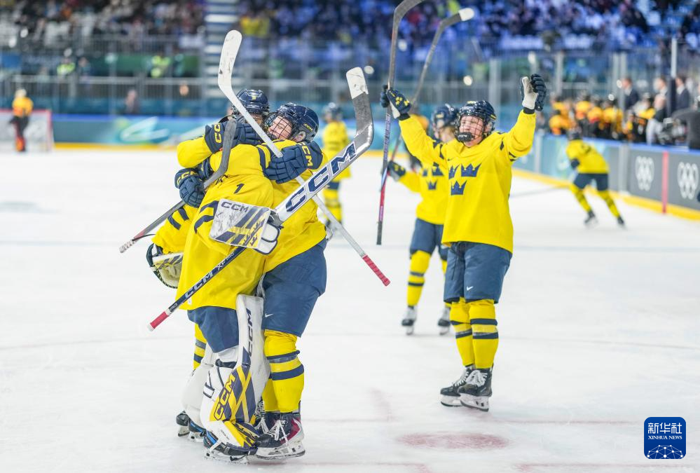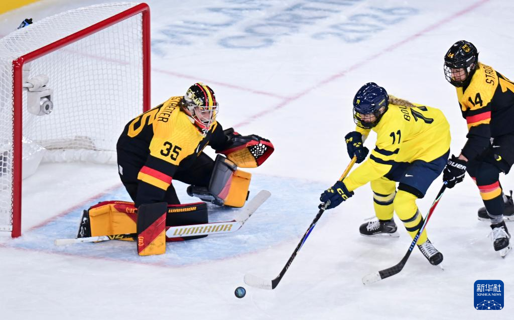 当地时间2月5日,在意大利米兰举行的米兰-科尔蒂纳冬奥会冰球项目女子小组赛B组比赛中,瑞典队4比1战胜德国队。