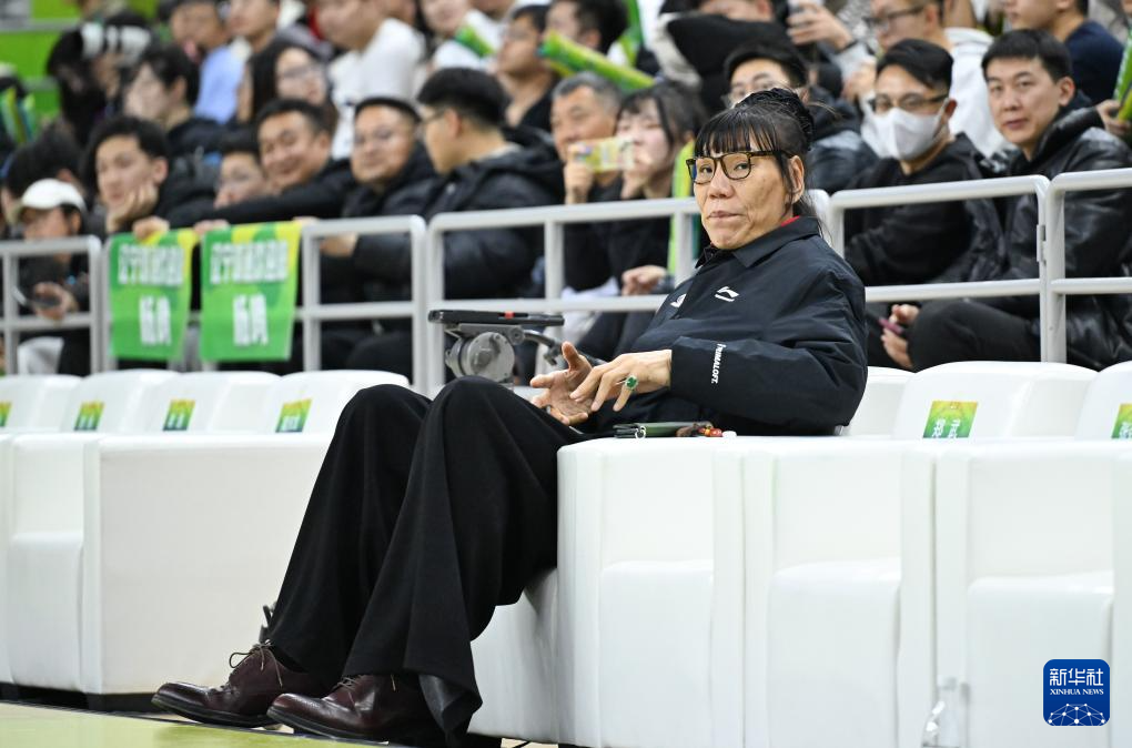 2月6日,中国篮球名人堂成员郑海霞在场边观赛。