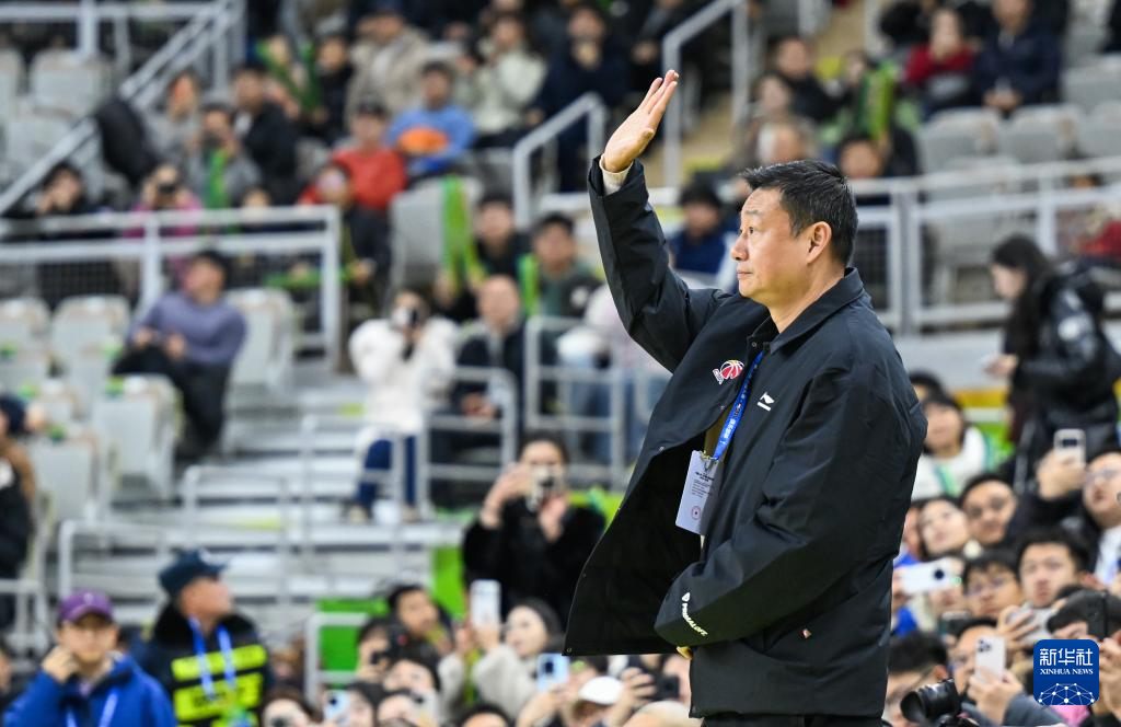 2月6日,前中国篮球运动员吴庆龙在赛前向观众致意。