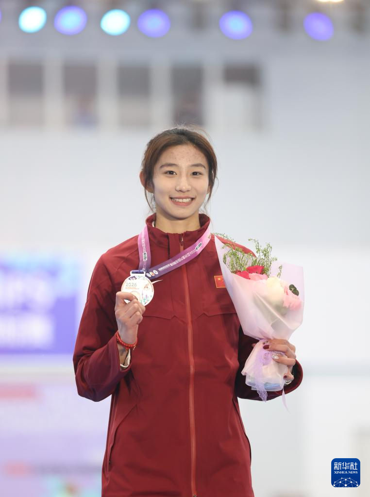 2月7日,季军中国选手危菱侠在女子撑杆跳高颁奖仪式上。
