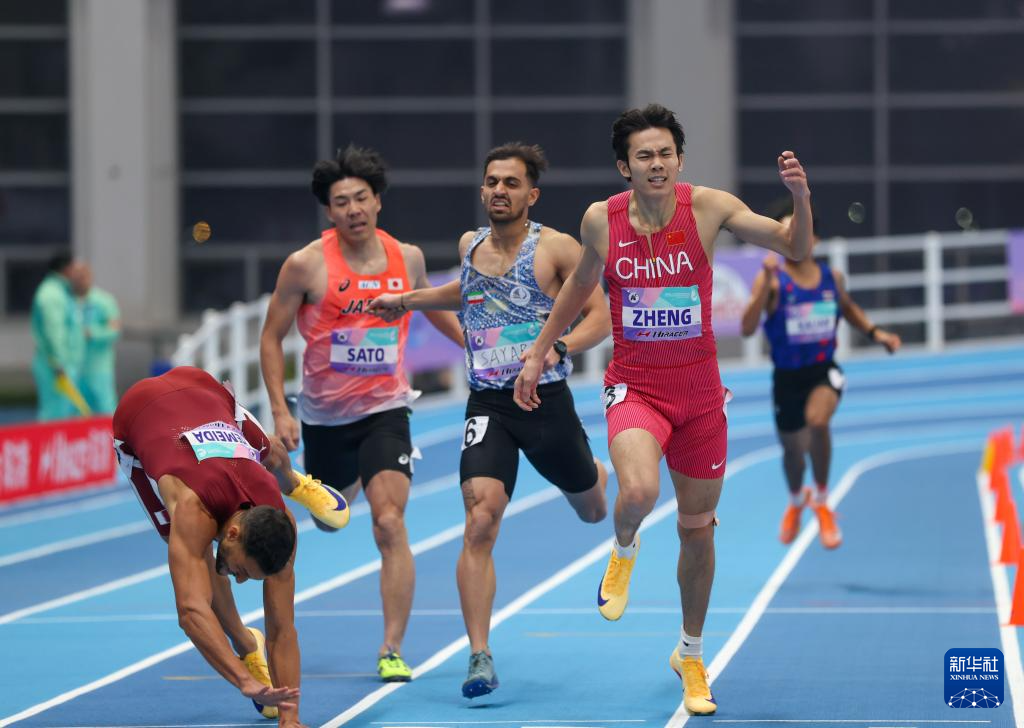 2月7日,男子400米决赛亚军中国选手郑驰宇(右一)在比赛中冲刺。