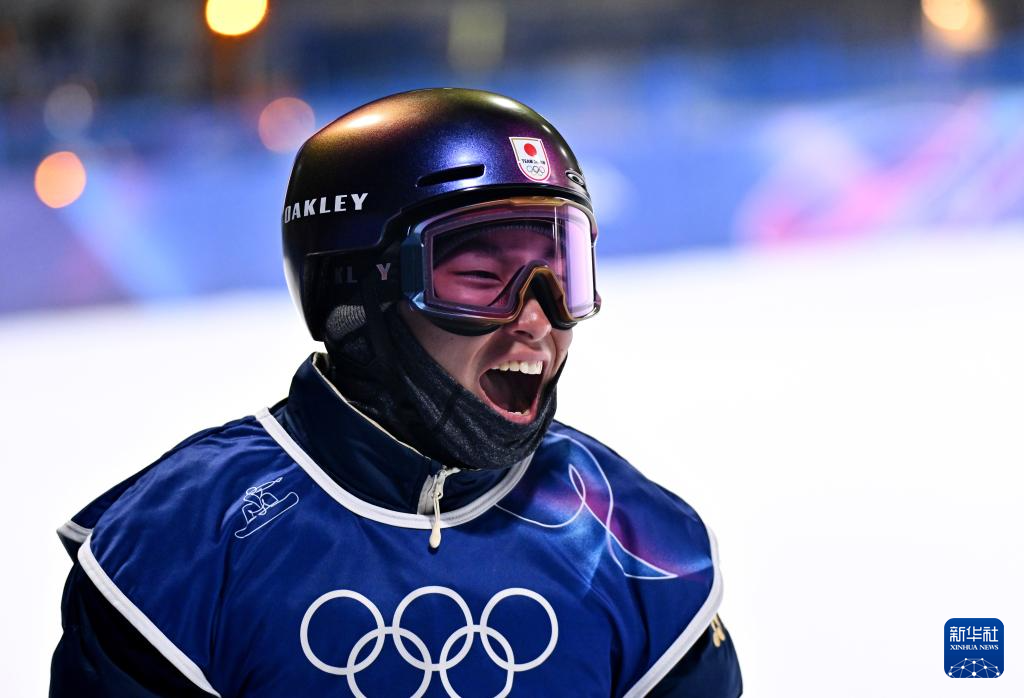 2月7日,日本选手木俣椋真在比赛中庆祝。他获得亚军。