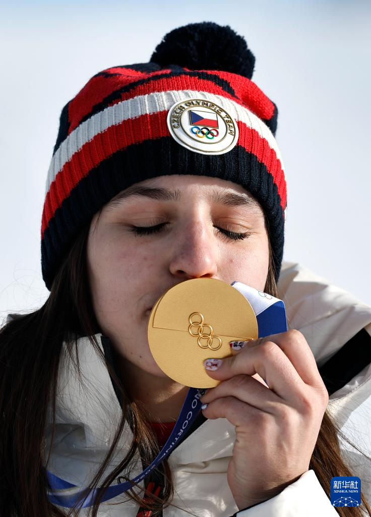 2月8日,冠军捷克选手马德罗娃在颁奖仪式上。