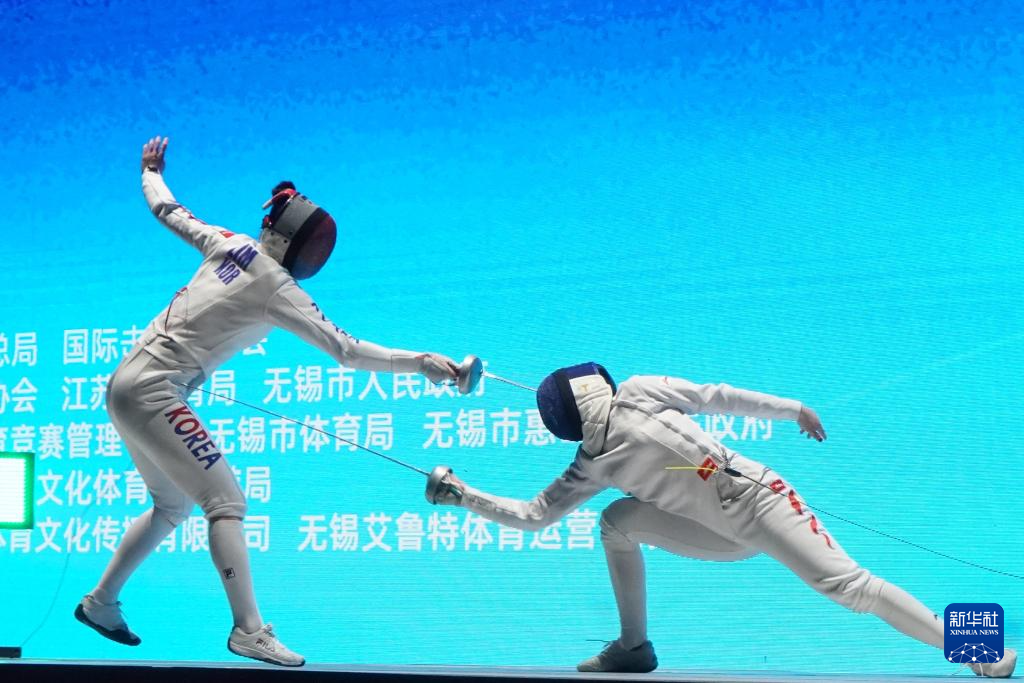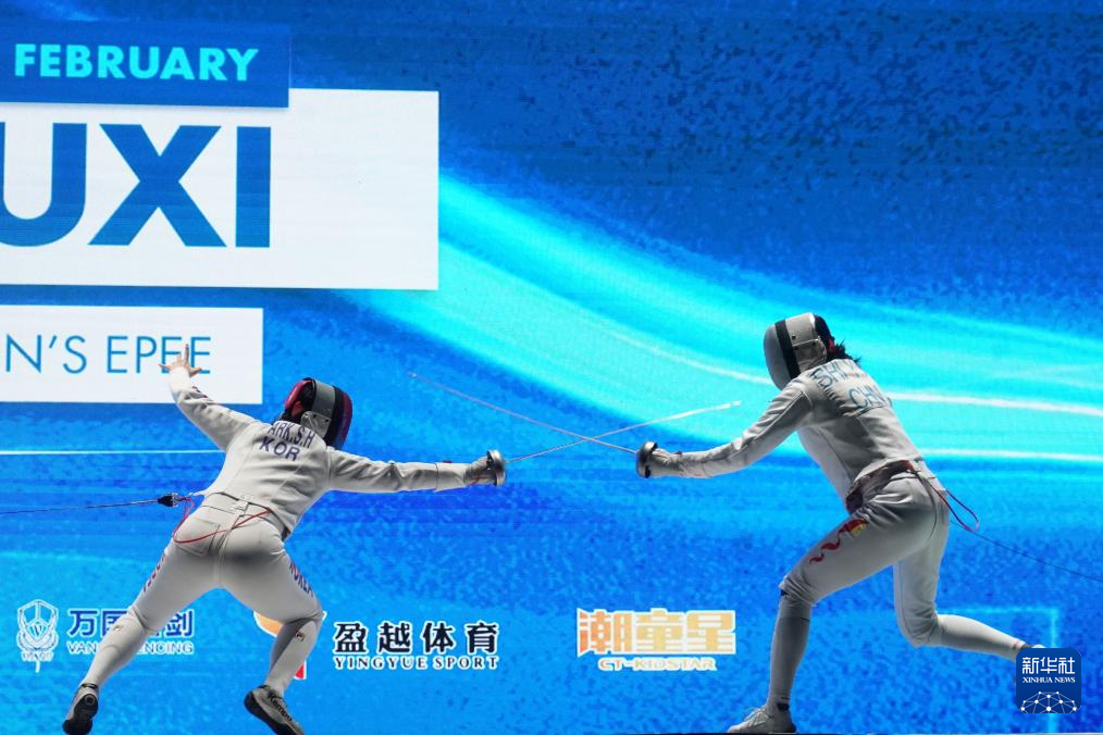 2月8日,在2026年国际剑联女子重剑世界杯(无锡站)团体决赛中,中国队45比35战胜韩国队,获得冠军。