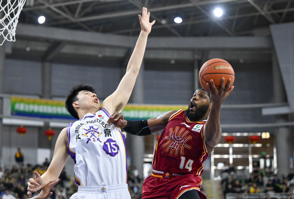 2月7日,山西队球员奈特(右)在比赛中进攻。新华社记者 贝赫 摄
