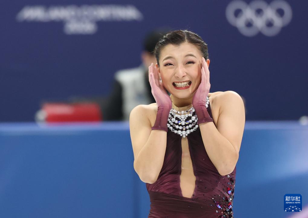 2月8日,日本队选手坂本花织在团体赛女单自由滑比赛中。