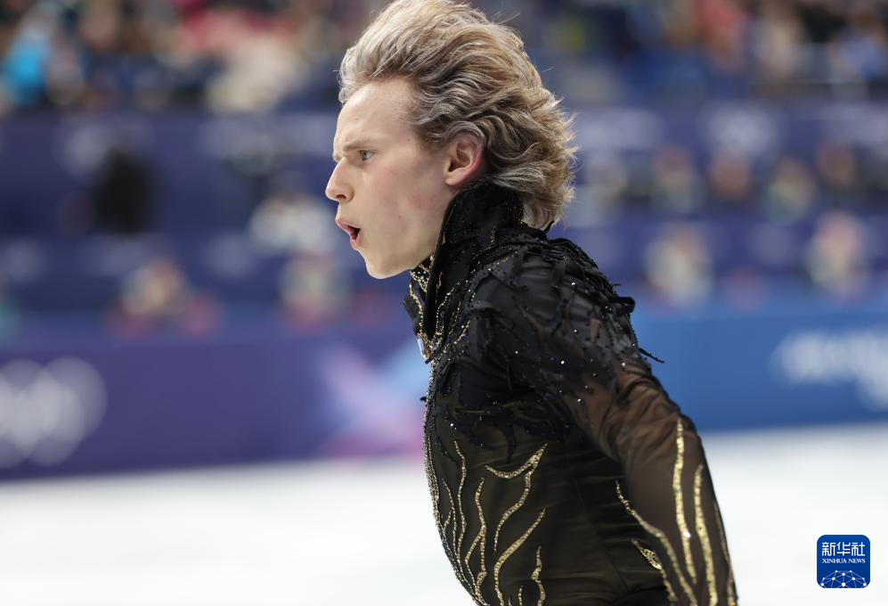 2月8日,美国队选手马里宁在团体赛男单自由滑比赛中。