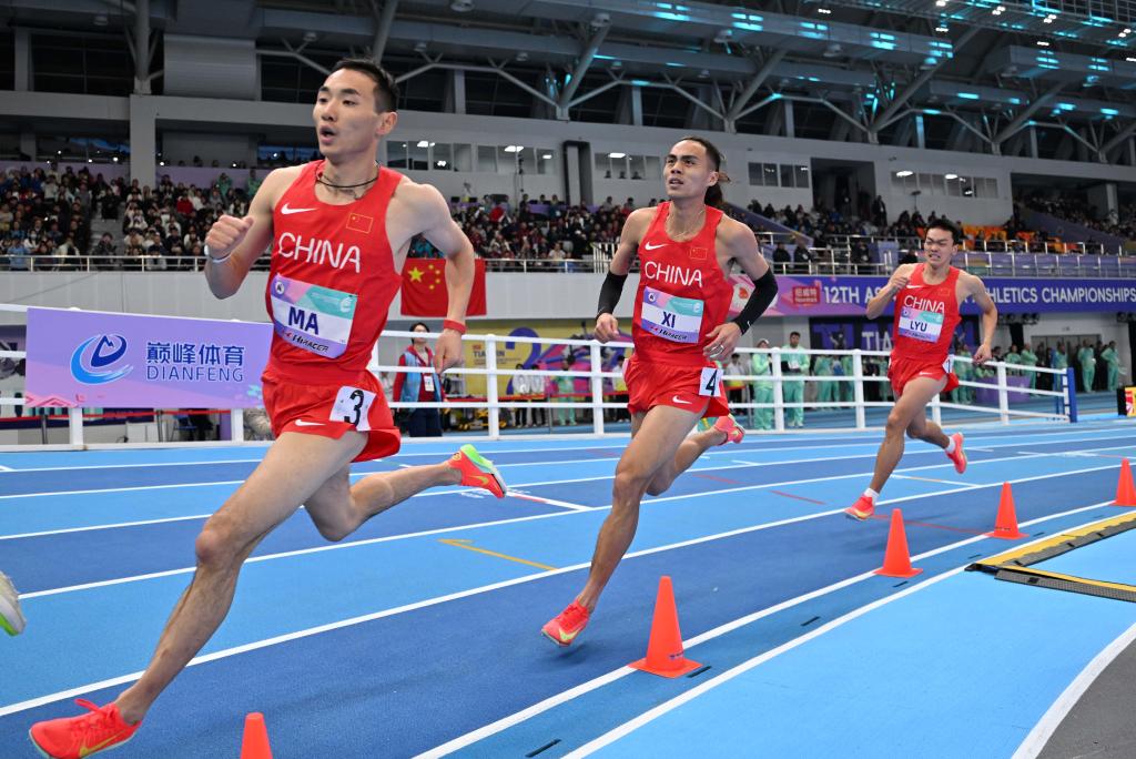 在这场亚洲室内田径锦标赛男子800米决赛中,他在进入最后一个直道后突然加速,连超两名对手后第三个冲过终点。