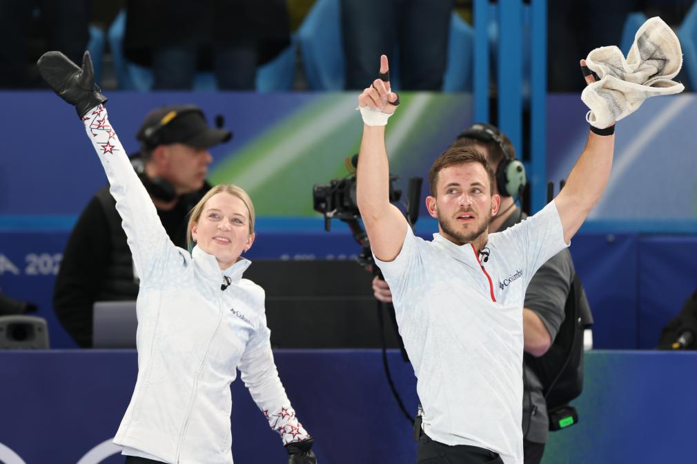 美国组合德雷普金/蒂斯与意大利组合莫萨纳/康斯坦丁尼的比赛更为胶着,两队均在各自的后手局得分。第七局结束时,美国组合仍落后一分,但他们在强力进攻局中拿下两分,以9:8锁定胜利。全场比赛美国队发挥更为稳健,其中女选手蒂斯成功率高达92%。她赛后说:“这是我们第一次参加冬奥会,能够打进金牌赛简直是梦想成真。”
