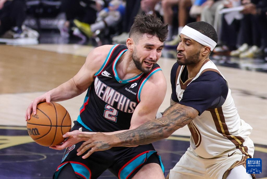 2月9日,灰熊队球员李凯尔(左)在比赛中投篮。