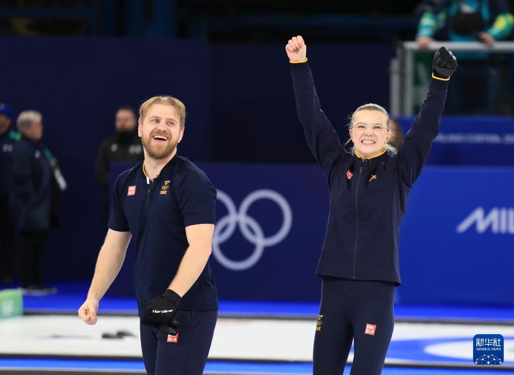 当地时间2月10日,在米兰-科尔蒂纳冬奥会冰壶混合双人金牌赛中,瑞典队6比5战胜美国队,获得冠军。